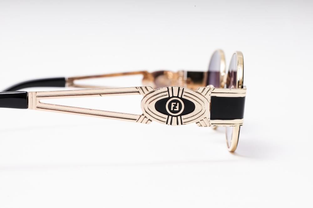 - نظارة فندي Retro Glam بإطار ذهبي وعدسات موف داكنة.